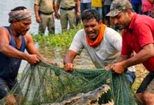 तालाब में मछली समझकर खींचा जाल, निकला 7-8 फीट लंबा मगरमच्छ, मछुआरों के उड़े होश