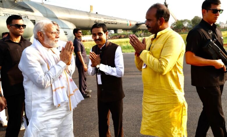 *धमतरी प्रभारी योगेश तिवारी ने हेलीपैड में प्रधानमंत्री मोदी से की मुलाकात, 11 सीटे जीतने का दिया भरोसा*