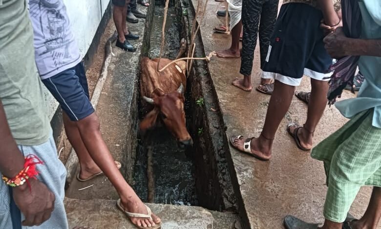 *●देवकर में खुले नाली पर गिरने से फंसा गाय, नगरवासियों ने बड़ी मशक्कत कर किया रेस्क्यू●*