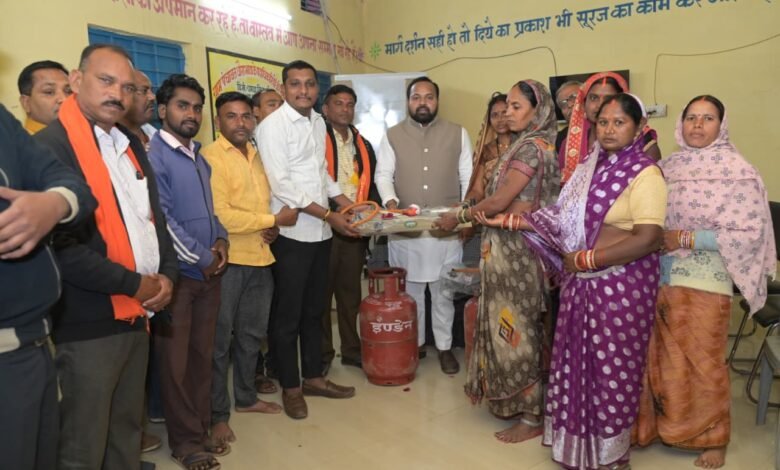 बेमेतरा:- बेमेतरा विधानसभा क्षेत्र अंतर्गत ग्राम पंचायत धौरा भांठा में आज केंद्र सरकार की महत्वाकांक्षी प्रधानमंत्री उज्ज्वला योजना के अंतर्गत 70 महिलाओं को निःशुल्क गैस सिलेंडर एवं चूल्हों का वितरण कार्यक्रम रखा गया था। जिसमें बेमेतरा विधायक दीपेश साहू मुख्य अतिथि के रूप में सम्मिलित हुआ। कार्यक्रम के दौरान विधायक साहू ने लाभार्थी महिलाओं को गैस कनेक्शन प्रदान कर उन्हें बधाई दी तथा उनके उज्ज्वल, सुरक्षित और स्वस्थ जीवन की कामना की। उन्होंने कहा कि उज्ज्वला योजना केवल रसोई तक सीमित योजना नहीं है, बल्कि यह महिलाओं को धुएँ से मुक्ति, बेहतर स्वास्थ्य, समय की बचत और सम्मानजनक जीवन प्रदान करने की दिशा में एक ऐतिहासिक पहल है।अपने संबोधन में विधायक दीपेश साहू ने कहा उज्ज्वला योजना बहनों के जीवन में स्वच्छता, सुरक्षा और आत्मनिर्भरता की नई लौ जलाने का माध्यम है। स्वस्थ नारी से ही स्वस्थ परिवार और सशक्त समाज का निर्माण संभव है। सरकार का उद्देश्य है कि कोई भी बहन धुएँ में खाना पकाने को मजबूर न हो। उन्होंने कहा कि ग्रामीण क्षेत्रों में इस योजना से महिलाओं के स्वास्थ्य में सकारात्मक बदलाव आया है और यह योजना महिला सशक्तिकरण की मजबूत आधारशिला बन रही है। विधायक साहू ने केंद्र एवं राज्य सरकार द्वारा चलाई जा रही जनकल्याणकारी योजनाओं की जानकारी देते हुए अधिक से अधिक पात्र परिवारों को इनका लाभ लेने का आह्वान किया। कार्यक्रम विधायक प्रतिनिधि किशुन साहू डामन साहू खुमान साहू थानेश्वर साहू सहित ग्राम पंचायत सरपंच, उपसरपंच, जनप्रतिनिधिगण एवं बड़ी संख्या में ग्रामीण महिलाएँ उपस्थित रहीं।