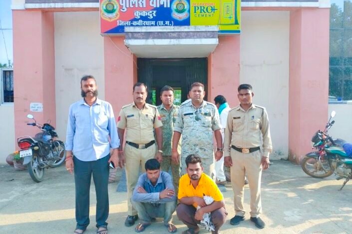 कबीरधाम पुलिस कप्तान डॉ. लाल उमेद सिंह के द्वारा जिले के समस्त थाना/चौकी प्रभारियों को अपने-अपने थाना/ चौकी क्षेत्र में लगातार उचित वैधानिक कार्यवाही कर असामाजिक तत्वों पर लगाम लगाने निर्देशित किया गया था। जिस पर अतिरिक्त पुलिस अधीक्षक श्रीमती मनीषा ठाकुर रावटे तथा पुलिस अनुविभागीय अधिकारी पंडरिया श्री पंकज पटेल के मार्गदर्शन में थाना प्रभारी कुकदुर निरीक्षक श्री सावन सारथी के द्वारा थाना क्षेत्र में अपराधिक गतिविधियों पर सतत निगाह रखते हुये, असामाजिक कृतो को अंजाम देने वाले आरोपियों पर उचित वैधानिक कार्यवाही किया जा रहा है। इसी तारतम्य में दिनांक- 09.09.2022 को प्रार्थी द्वारा थाना आकर रिपोर्ट दर्ज कराया गया कि किसी अज्ञात व्यक्ति के द्वारा मेरे 13 नग भेड़ किमती 1,50,000/- रुपये को चोरी कर ले गया है। कि रिपोर्ट पर थाने में अपराध पंजीबद्ध कर विवेचना में लिया गया। तथा उक्त घटना की जानकारी जिले के वरिष्ठ अधिकारी गणों को दी गई। जिस पर वरिष्ठ अधिकारी गणों से मार्गदर्शन प्राप्त कर आरोपियों के पता तलाश हेतु थाना प्रभारी द्वारा विशेष टीम गठित कर क्षेत्र के अलग-अलग स्थान में रवाना किया गया। जिस पर जल्द ही पुलिस टीम को सफलता प्राप्त हुई और महज चंद घंटे के अंदर आरोपियों को पकड़ने में पुलिस टीम को सफलता प्राप्त हुआ। पुलिस के विश्वसनीय मुखबिर के सूचना पर ग्राम कोदवा गौड़ान तिराहा में संदेहियों को घेराबंदी कर पकड़ा गया जिनसे नाम पता पूछने पर अपना नाम (1) रिन्कु खाण्डे पिता अश्वनी खाण्डे उम्र 27 साल सा. गोड खाम्ही थाना लोरमी जिला मुंगेली (छ.ग.)। (2). सरोसा साहू पिता झंगर साहू उम्र 32 साल सा. अमलडीही थाना लोरमी जिला मुंगेली (छ.ग.) का होना बताया जिनके कब्जे से 13 नग भेड़, घटना में प्रयुक्त एक टाटा मेगा एक्स.एल. वाहन क. सी.जी. 28 एच-8614 नीला रंग को जप्त कर कब्जा पुलिस लिया गया एवं आरोपी के विरुद्ध पर्याप्त सबूत पाये जाने से विधिवत् गिरफ्तार कर माननीय न्यायालय के समक्ष प्रस्तुत कर ज्यूडिशियल रिमाण्ड पर पेश किया गया है।