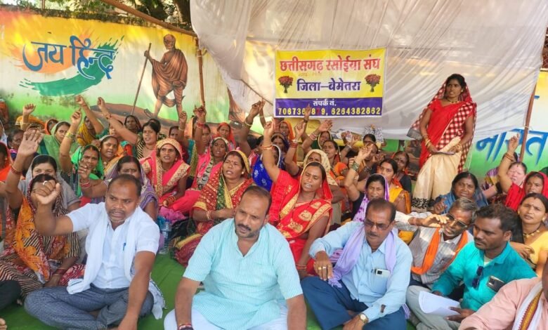 बेमेतरा:- कलेक्टर दर पर मानदेय देने समेत तीन सूत्रीय मांगों को लेकर बेमेतरा ब्लॉक स्तरीय रसोइया संघ तहसील कार्यालय परिसर में अनिशिचत कालीन हड़ताल पर है । किसान नेता योगेश तिवारी शुक्रवार को धरना स्थल पर रसोईया संघ की मांगों को समर्थन देने पहुंचे। रसोईया संघ की महिला सदस्य किसान नेता को आपबीती बताते हुए भावुक हो गई। उन्होंने किसान नेता को बताया कि जी तोड़ मेहनत के बावजूद अपेक्षित पारिश्रमिक नहीं मिल रहा है । कई बार महीनों मेहनताना नही मिलता। नतीजतन आर्थिक तंगी का सामना करना पड़ता है। इस दौरान तुलाराम जंंघेल, शीला मानिकपुरी, रामकुमार साहू, प्रमोद राव, निशा जांगड़े, परदेशी राम, टेकचंद बंजारे, मंटोरा बाई, मंजू यादव आदि उपस्थित थे।
